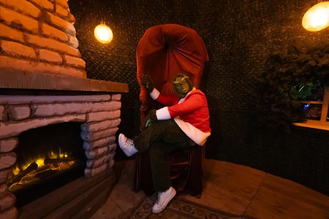 Резиденція Грінча, будиночок з декором та анімаційними іграшками, олені, які співають.