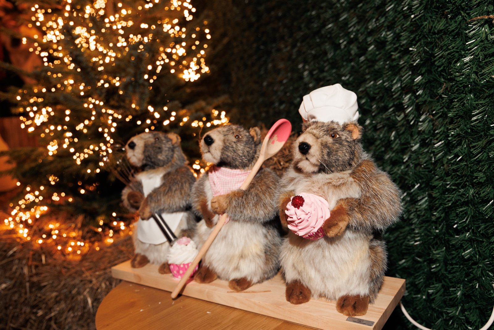 Схована серед дерев, резиденція нагадує затишний лісовий будиночок. Усередині — тепле світло гірлянд, дерев’яний декор і червоне крісло, ніби щойно залишене самим Грінчем. А в куточку по-домашньому в’яже святкову шкарпетку білочка.