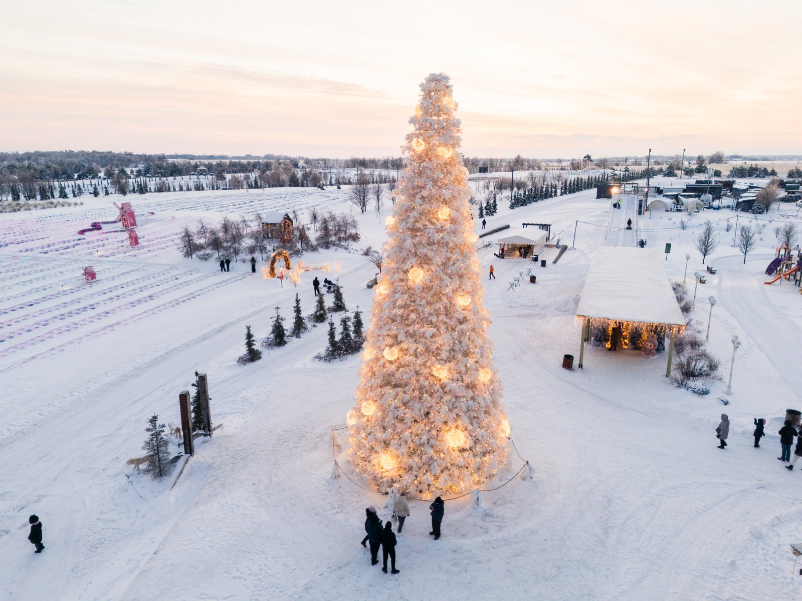 Цієї зими у Добропарку з’явилася одна з найтрендовіших ялинок України — біла 20-метрова ялинка, прикрашена іграшками Лабубу та гірляндами у теплих відтінках.